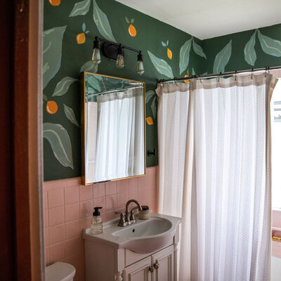 "I wanted something unexpected and unique in our main floor bathroom. Meredith truly delivered. She created a stunning mural of oranges and blossoms that completely transformed the space. Her artistry, attention to detail and custom paint colors brought the vision to life in a way that feels both fresh and timeless. What was just a wall is now a piece of art we absolutely love. "